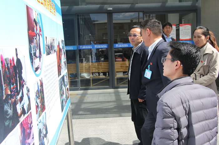 調(diào)研組領(lǐng)導觀看我院阿里包蟲病篩查工作匯報展覽板