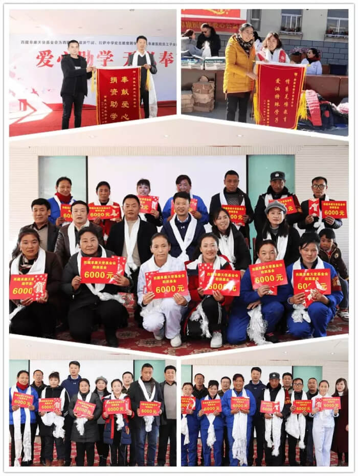 2018年2月11日,西藏阜康天使基金會和西藏阜康醫(yī)院黨委、工會,在新春佳節(jié)來臨之際慰問困難群眾和員工,根據(jù)困難程度分別發(fā)放6000元、12000元、60000元不等的慰問金。同年11月,"西藏阜康天使基金會助學助醫(yī)捐贈儀式”在阜康婦產兒童分院舉行,在本次捐贈儀式上,西藏阜康天使基金會為西藏大學政法學院30名貧困學生,每人捐助4000元的生活補貼,總金額為120000元人民幣。通過這些幫扶活動幫助了貧困員工、貧困群眾和學生走出困境、重塑生活,為他們生活注入了新的希望。