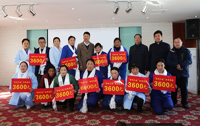 王董事長(zhǎng)表示,今天到此的都是阜康最基層、最一線的人員,是她們默默無(wú)聞工作,創(chuàng)造了優(yōu)美、整潔的就醫(yī)環(huán)境,使來(lái)阜康的每一個(gè)人,對(duì)阜康有一個(gè)干凈整潔的第一感受。所以,我要感謝他們,感謝她們的辛勤勞動(dòng)換來(lái)了阜康的美好環(huán)境。說(shuō)實(shí)話,之前我曾多次考慮過(guò)為了阜康的發(fā)展,是不是將阜康的保潔工作外包給更專(zhuān)業(yè)的人員,用更專(zhuān)業(yè)、更省錢(qián)的方式來(lái)管理。但是,想到她們這群可愛(ài)的藏族姑娘,我又一次次的放棄了這個(gè)念頭。因?yàn)樗齻円彩俏覀兏房颠@個(gè)大家庭的一員。我們爭(zhēng)取努力,在2020年,讓她們和我們阜康的每一個(gè)人一起奔小康,借用習(xí)大大的一句話"一個(gè)都不能少”。最后,在新年來(lái)臨之際,祝愿阜康的每一位員工都不再需要阜康"雪域天使基金會(huì)”的幫助!